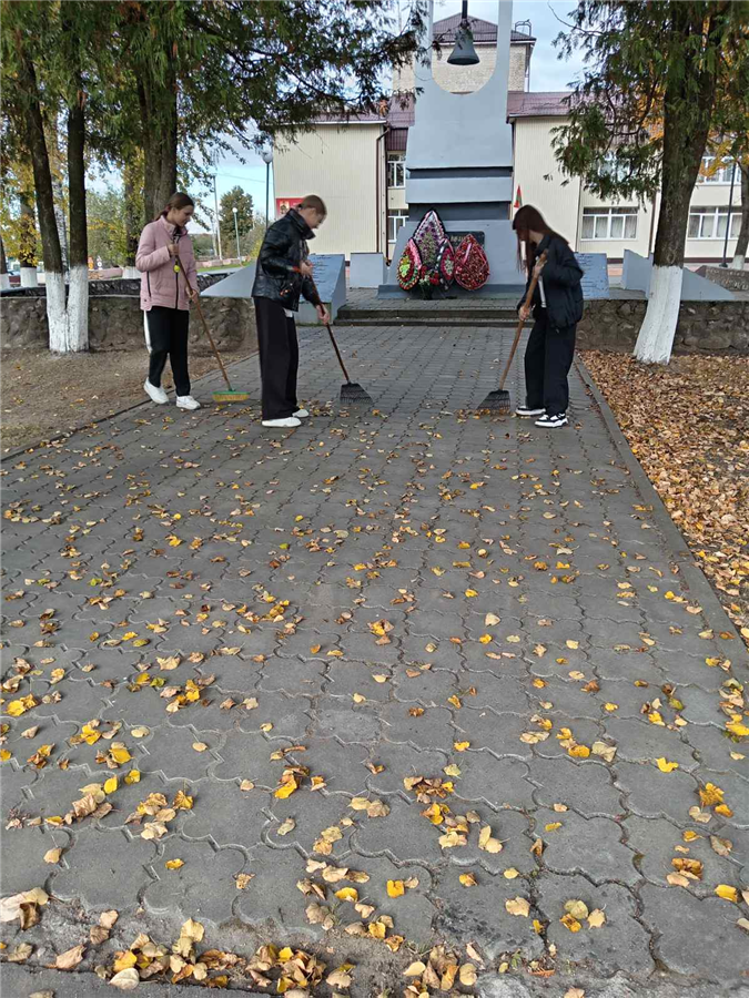 Осень подбрасывает много хлопот, связанных с уборкой опавшей листвы. В первую очередь мы заботимся о пришкольных участках и, конечно же, о памятниках, которые находятся под нашей опекой.Ребята наводили порядок на центральном памятнике воинам-землякам агрогородка Зембин. Было проведено несколько этапов акции "Обелиск", так как памятник размещен в парковой зоне, где много лиственных деревьев. Однако работа по уборке листвы велась достаочно активно. Результат не заставил себя ждать.