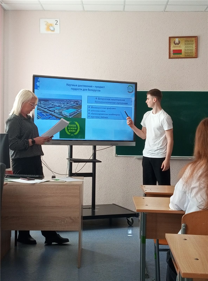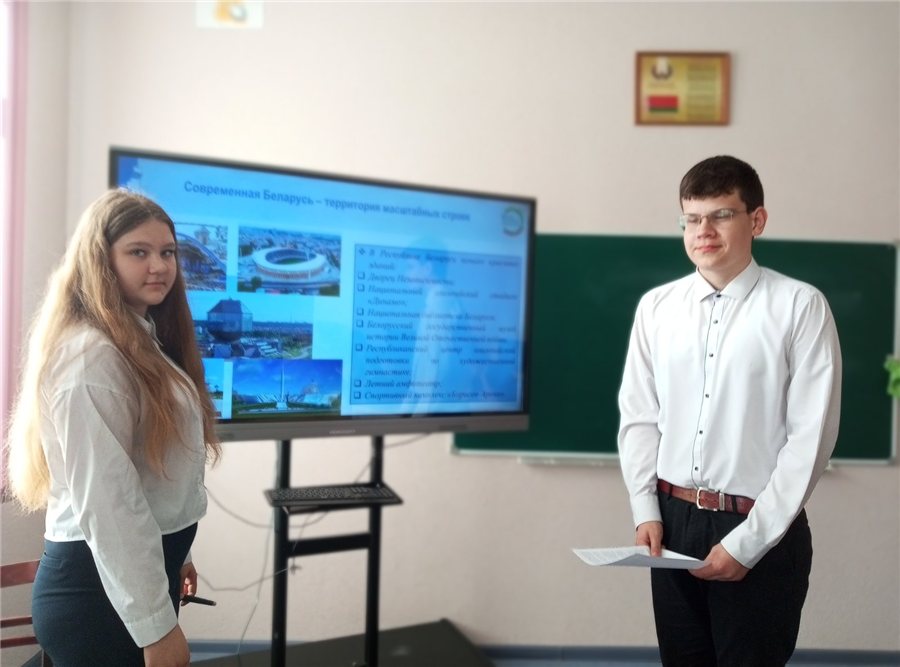 23 апреля в рамках информационно-образовательного проекта "ШАГ" для учащихся 8-11 классов прошло мероприятие на тему: "Быть достойным гражданином Республики Беларусь - значит гордиться достижениями Беларуси". Была организована работа по актуализации знаний учащихся о достижениях страны в области экономики, образования и науки, спорта, медицины за последние годы.
