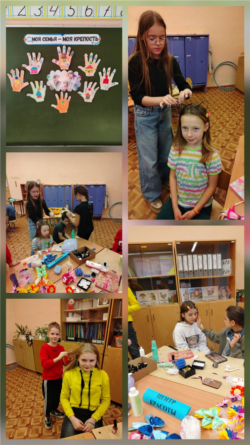 В центре творчества создавали уменьшенную модель семейного домика. А в центре красоты практиковались будущие парикмахеры и визажисты, создавая образ красивой мамы.