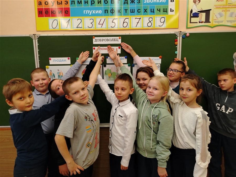 6 декабря, в шестой школьный день, с учащимися начальных классов была проведена дискуссия "Кто такие добровольцы?" Учащиеся получили представление о волонтёрстве как деятельности по доброй воле на благо других людей и общества. Ребята познакомились с основными направлениями волонтёрской деятельности, посмотрели видеоролик о зарождении волонтёрства, побеседовали о том, где можно встретить добровольцев. Затем ребята приняли участие в игре "Добрые дела в моих силах", где предлагали конкретные маленькие дела, которые могут сделать в школе, во дворе, в семье. В конце мероприятия все участники ответили на вопрос "Могу ли я стать добровольцем?" и пришли к выводу: "Быть добровольцем - значит начинать с малого: со своего класса, двора, семьи. Из маленьких добрых дел каждого из нас вырастает большое общее добро". Каждый из ребят дал обещание стараться делать как можно больше добрых дел.